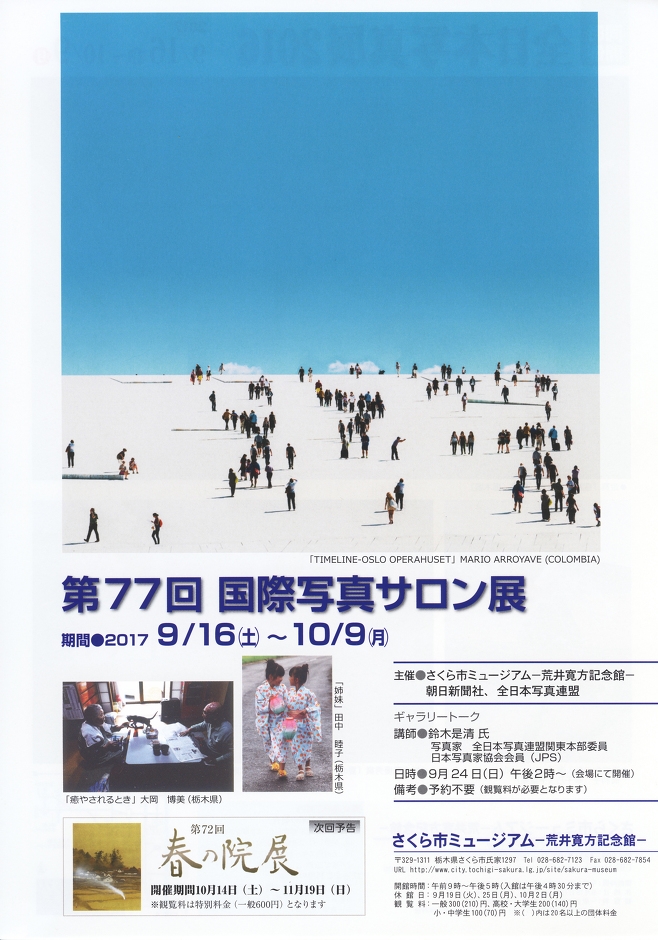 第77回国際写真サロン展・同時開催 全日本写真展2016 2017年9月16日(土)~10月9日(祝月)